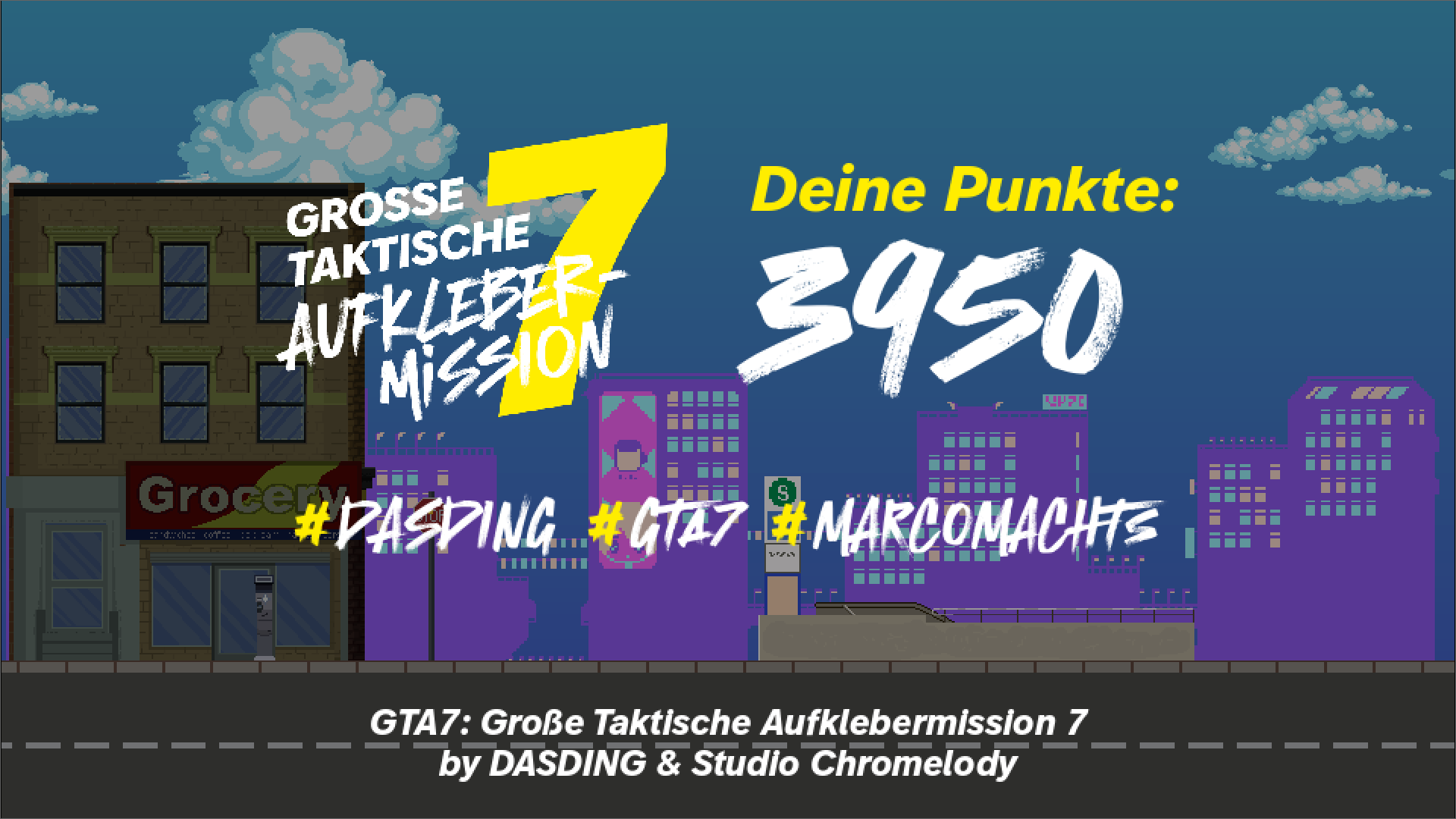 Du spielst als Marco in einer stylischen Pixelstadt. Deine Mission: In 30 Sekunden so viele DASDING-Sticker wie möglich an Laternen klatschen. Klingt simpel – aber Hindernisse und das Ticken der Uhr machen’s zur Stress-Mission. Ein chaotisches Jump’n’Run – sogar mit eigenem Soundtrack.